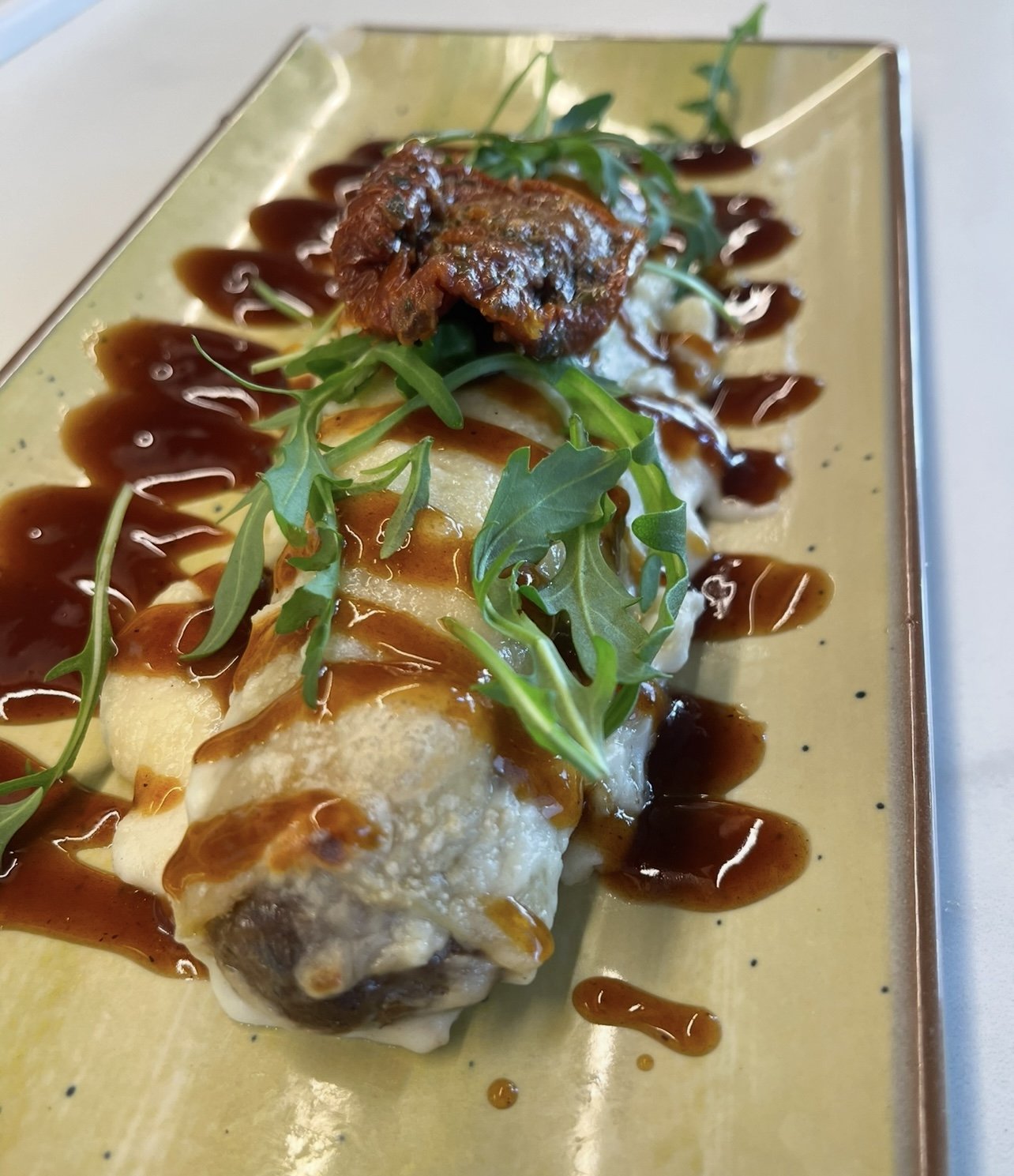 Berenjena parmigiana con salsa tomate, queso burrata y parmesano